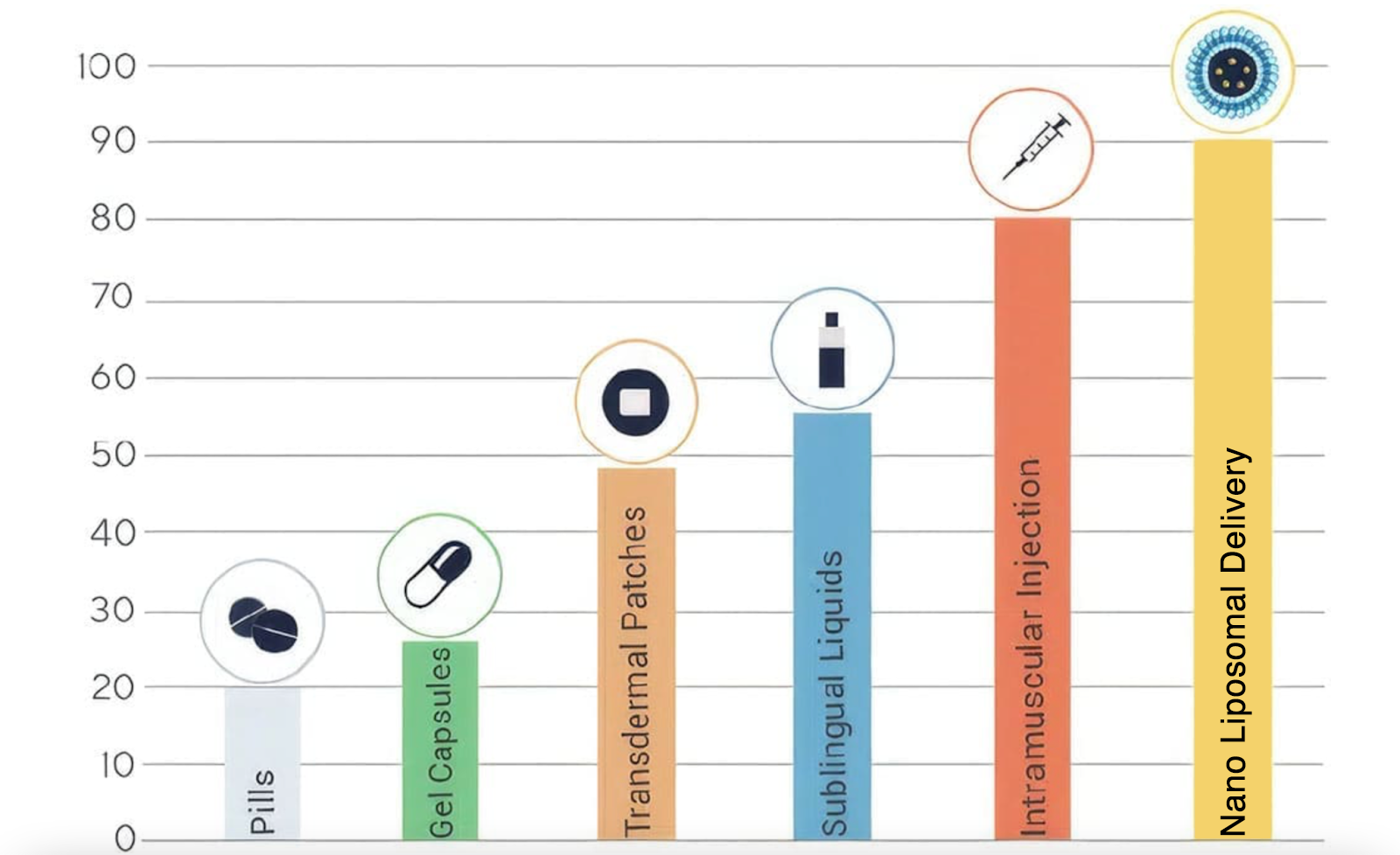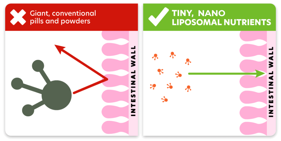 Liposomes are lipid molecules. Think of them as tiny bubbles made from the same material as cell membranes. They’ve been proven to be highly efficient in delivering drugs and nutrients to where they need to go within the body.